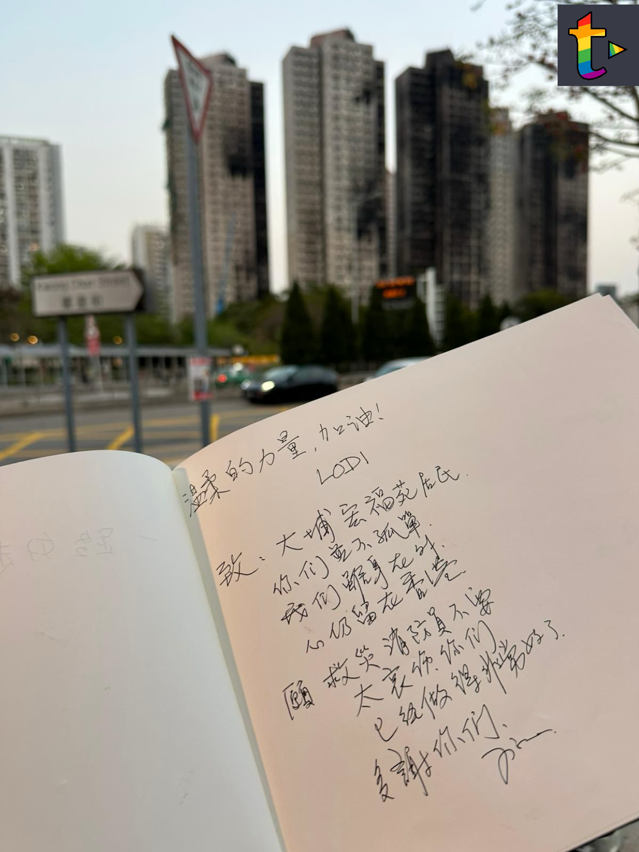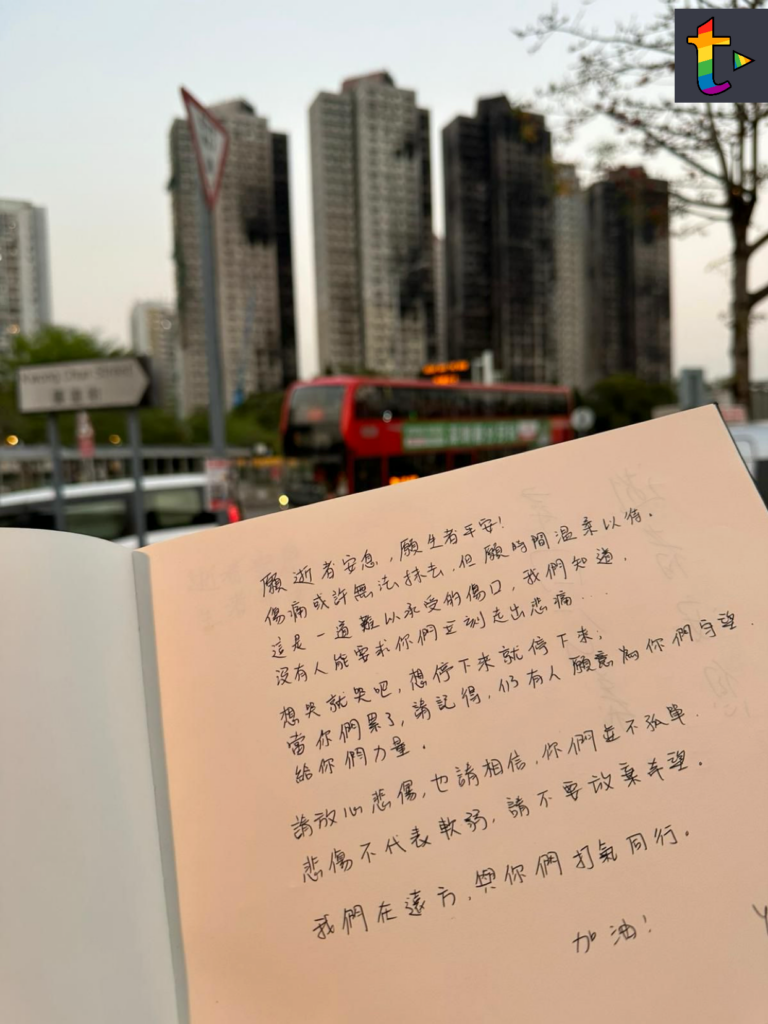 T Channel HK 彩虹頻度新聞專區 香山房新聞特約:香港新聞-在英港人商戶宏福苑大火弔唁冊抵港 TChannelHK April 2, 2026 1 min read Spread the love 去年11月26日大埔宏福苑發生災5級大火,導致168人罹難,在英國香港人商戶就宏福苑大火而簽署的弔唁冊,近日在終於抵港並在宏福苑現場展示弔唁冊悼念168名罹難者。 文字:美娜 圖片:母公司DOVC提供 Author: TChannelHK Author ProfileRelated Posts TChannelHKTChannelHKApril 21, 2026香山房新聞特約:香港新聞-律政司申請充公黎智英相關罪行財產涉款$1.27億TChannelHKApril 20, 2026香山新聞特約:港澳新聞-油價高企,噴射飛航、金光飛航來往香港至澳門船票週六起加價約1成TChannelHKApril 20, 2026香山房新聞特約:香港新聞-宏福苑居民首日返回單位執拾TChannelHKApril 19, 2026香山房新聞特約:香港新聞-全港非遺醒獅慈善創作大賽頒獎典禮 Continue Reading Previous: 香山房新聞特約-香港新聞-張國榮逝世23周年歌迷文華東方酒店外悼念Next: 香山房新聞特約:香港新聞-關注兒童權利與反性暴力團體《聯合立場書》發佈會 Leave a Reply Cancel replyYour email address will not be published. Required fields are marked *Comment * Name * Email * Website Save my name, email, and website in this browser for the next time I comment. Δ Related News 1 min read T Channel HK 彩虹頻度新聞專區 香山房新聞特約:香港新聞-律政司申請充公黎智英相關罪行財產涉款$1.27億 TChannelHK April 21, 2026 1 min read T Channel HK 彩虹頻度新聞專區 香山新聞特約:港澳新聞-油價高企,噴射飛航、金光飛航來往香港至澳門船票週六起加價約1成 TChannelHK April 20, 2026 1 min read T Channel HK 彩虹頻度新聞專區 香山房新聞特約:香港新聞-宏福苑居民首日返回單位執拾 TChannelHK April 20, 2026