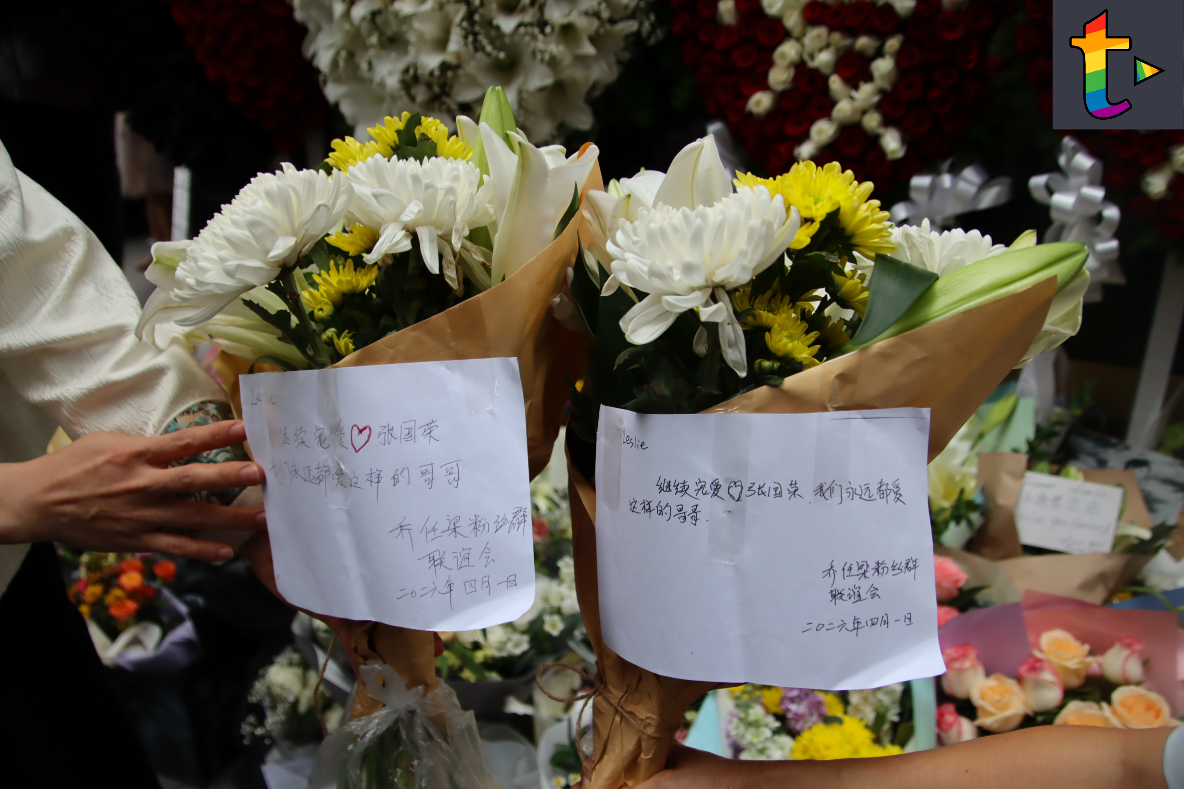 T Channel HK 彩虹頻度新聞專區 香山房新聞特約-香港新聞-張國榮逝世23周年歌迷文華東方酒店外悼念 TChannelHK April 1, 2026 1 min read Spread the love 今日係哥哥張國榮逝世23周年,如往年各地的歌迷及影迷在文華東方外擺放鮮花及哥哥的相片悼念,亦擺滿了寫上懷念字句的書信,晚上更有樂隊在酒店附近演奏張國榮的歌曲。 文字/攝影:美娜 Author: TChannelHK Author ProfileRelated Posts TChannelHKTChannelHKApril 22, 2026香山房新聞特約:香港新聞-九巴遊香港天際漫遊HK2週六啟航TChannelHKApril 21, 2026香山房新聞特約:香港新聞-律政司申請充公黎智英相關罪行財產涉款$1.27億TChannelHKApril 20, 2026香山新聞特約:港澳新聞-油價高企,噴射飛航、金光飛航來往香港至澳門船票週六起加價約1成TChannelHKApril 20, 2026香山房新聞特約:香港新聞-宏福苑居民首日返回單位執拾 Continue Reading Previous: 香山房新聞特約:香港新聞-的士必須提供至少2種電子支付今日實施Next: 香山房新聞特約:香港新聞-在英港人商戶宏福苑大火弔唁冊抵港 Leave a Reply Cancel replyYour email address will not be published. Required fields are marked *Comment * Name * Email * Website Save my name, email, and website in this browser for the next time I comment. Δ Related News 1 min read T Channel HK 彩虹頻度新聞專區 香山房新聞特約:香港新聞-九巴遊香港天際漫遊HK2週六啟航 TChannelHK April 22, 2026 1 min read T Channel HK 彩虹頻度新聞專區 香山房新聞特約:香港新聞-律政司申請充公黎智英相關罪行財產涉款$1.27億 TChannelHK April 21, 2026 1 min read T Channel HK 彩虹頻度新聞專區 香山新聞特約:港澳新聞-油價高企,噴射飛航、金光飛航來往香港至澳門船票週六起加價約1成 TChannelHK April 20, 2026