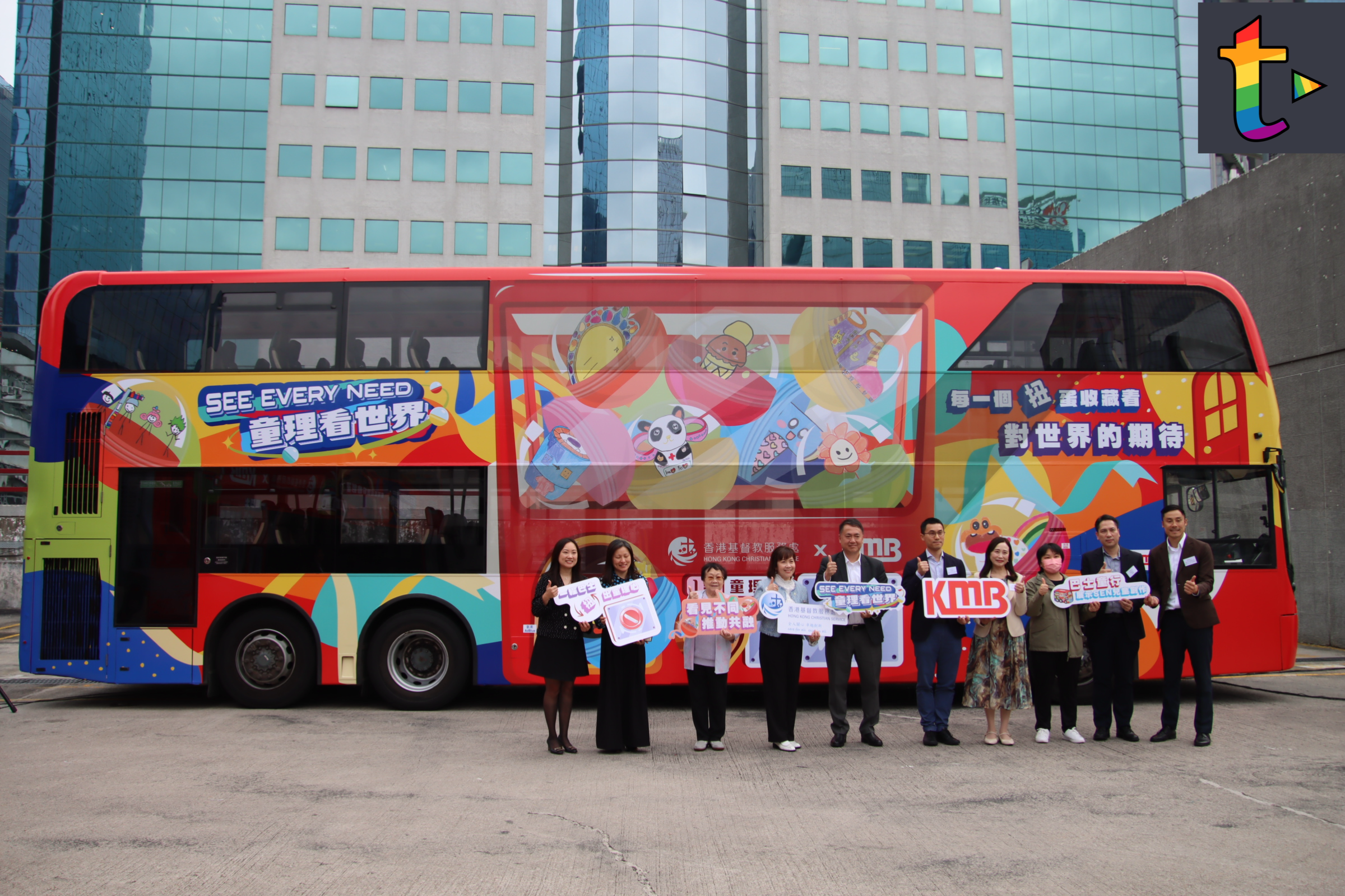 九巴致力推行社會共融,九巴今日連同香港基督教家庭服務處,在九龍灣車廠舉行「SEE EVERY NEED 童理看世界」 友善社區計劃啟動禮,活動當中有SEN兒童家長及長者分享生活遇到的問題,九巴亦邀請到運輸署助理署長黃志光JP為啟動禮嘉賓,九巴贊助3輛巴車身及車廂貼上59幅由SEN兒童創作畫作,3輛巴士分別行走九巴85、260X及296C路線,3條路線都會途經社區共融設施。