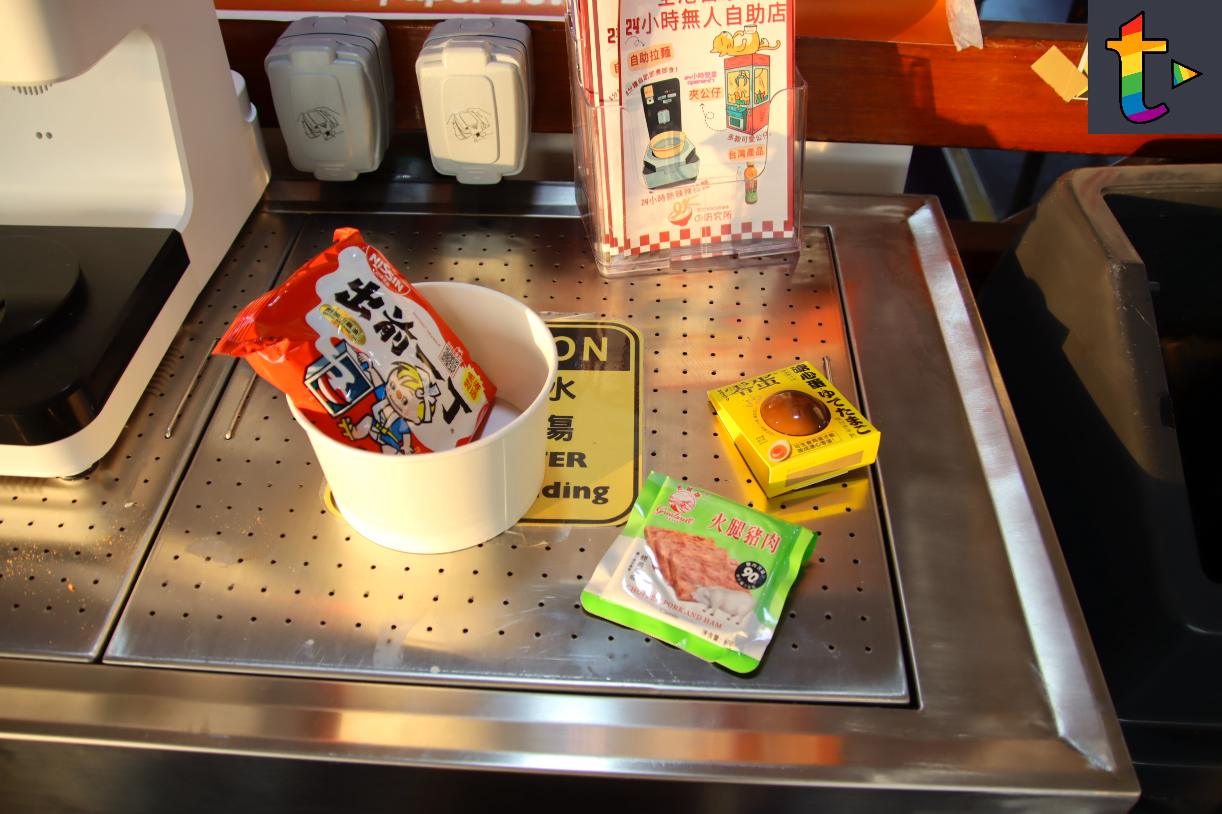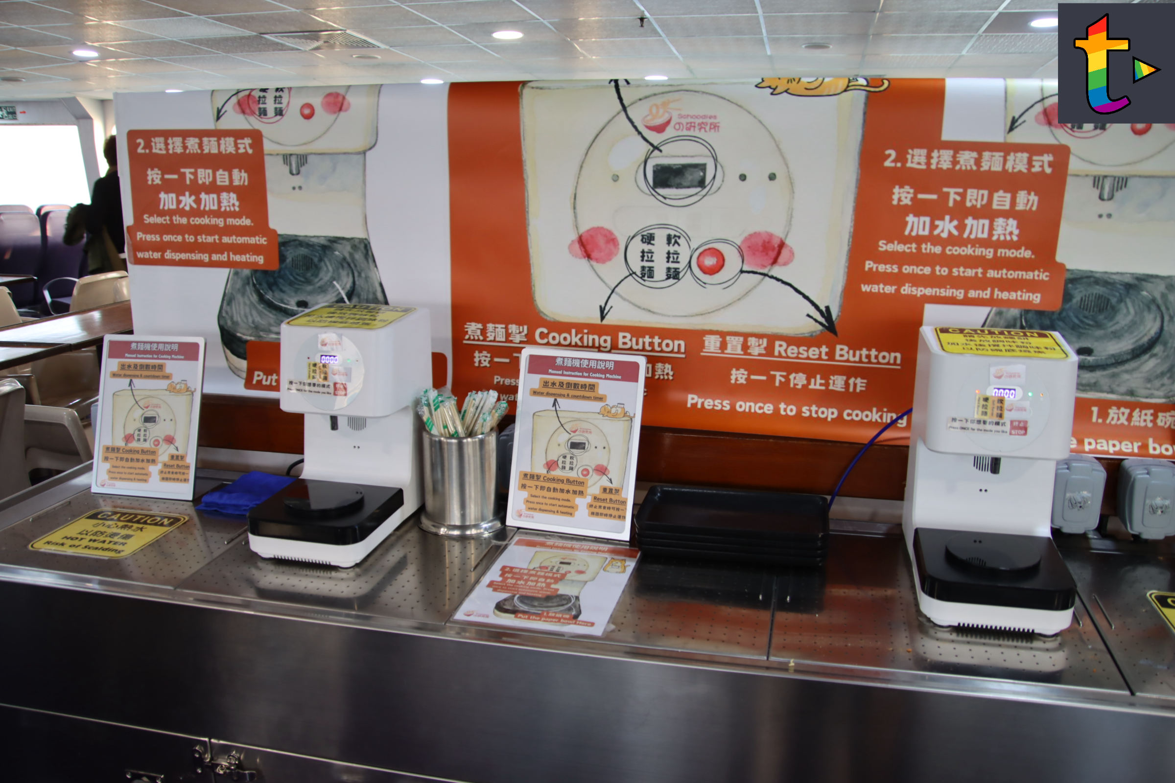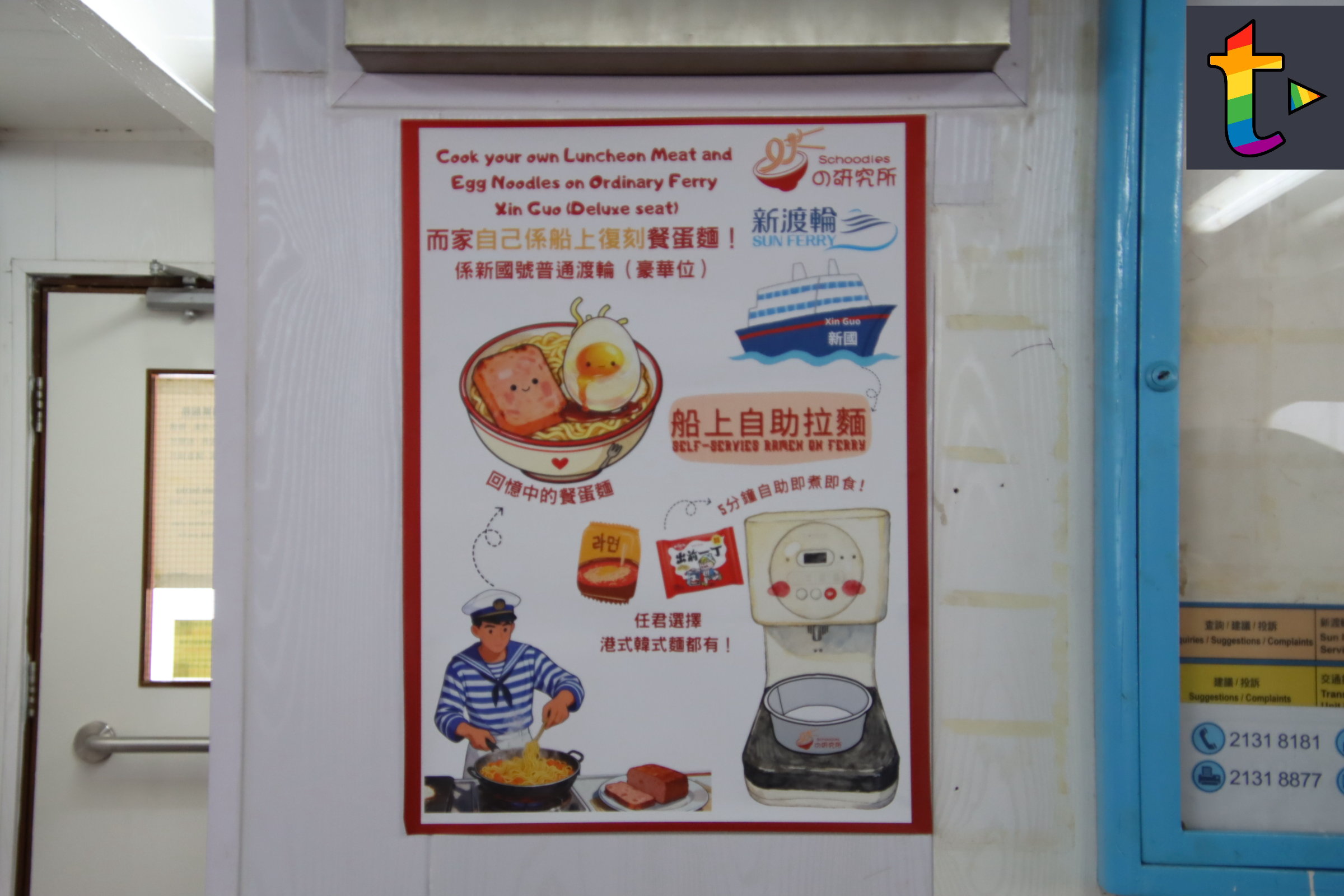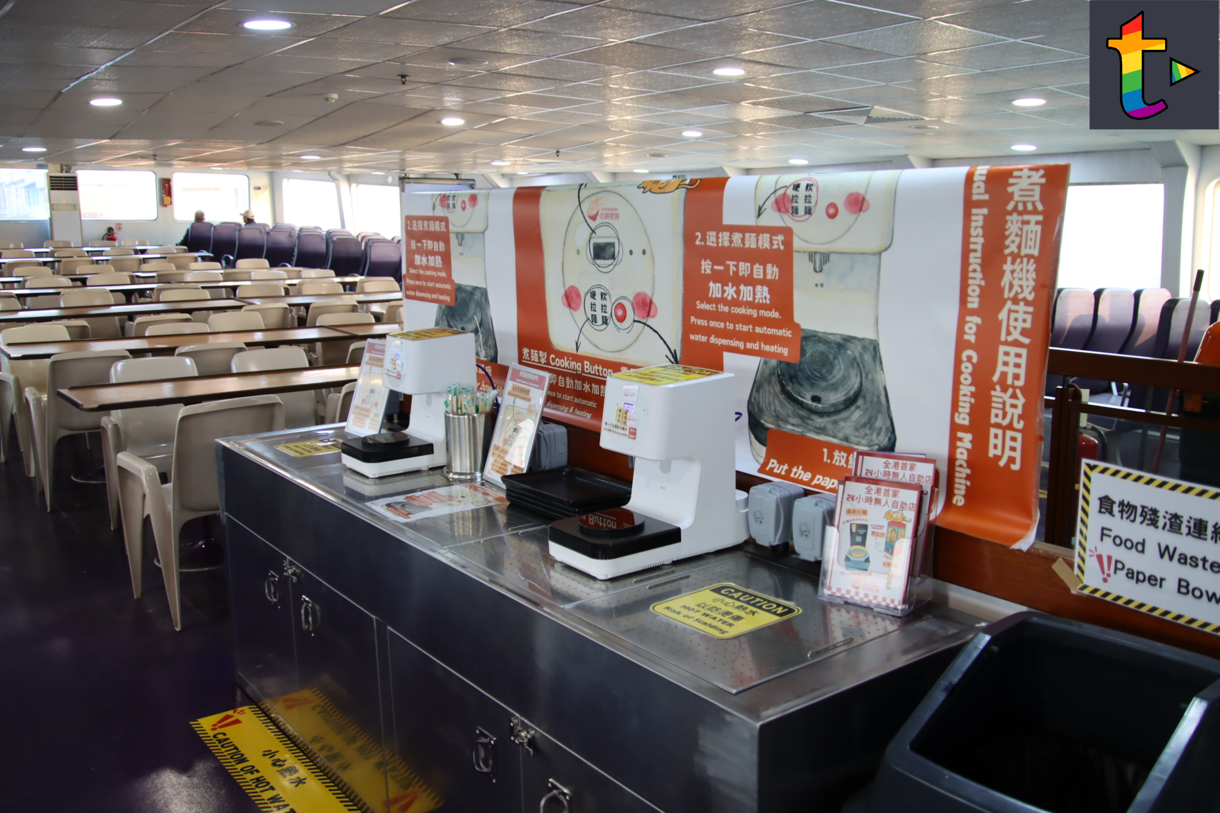 昔日乘搭離島渡輪乘客都會食返碗水手渡輪餐蛋麵,但已經成為集體回憶,最近新渡輪與麵の研究所合作,在新渡輪3層渡輪新國號豪華位引入自助即食麵自助售賣及配料機,乘客選取心水麵款及配料,可以在豪華位安裝的無火煮食爐,乘客可以親手自己煮麵食,即食麵自助售賣及配料機暫時只接受電子支付平台付款,暫時未接受八達通付款,現在是試驗階段,未知會否延伸在其他渡輪客艙上,現在可以重拾昔日搭離島渡輪食餐蛋麵的風味。