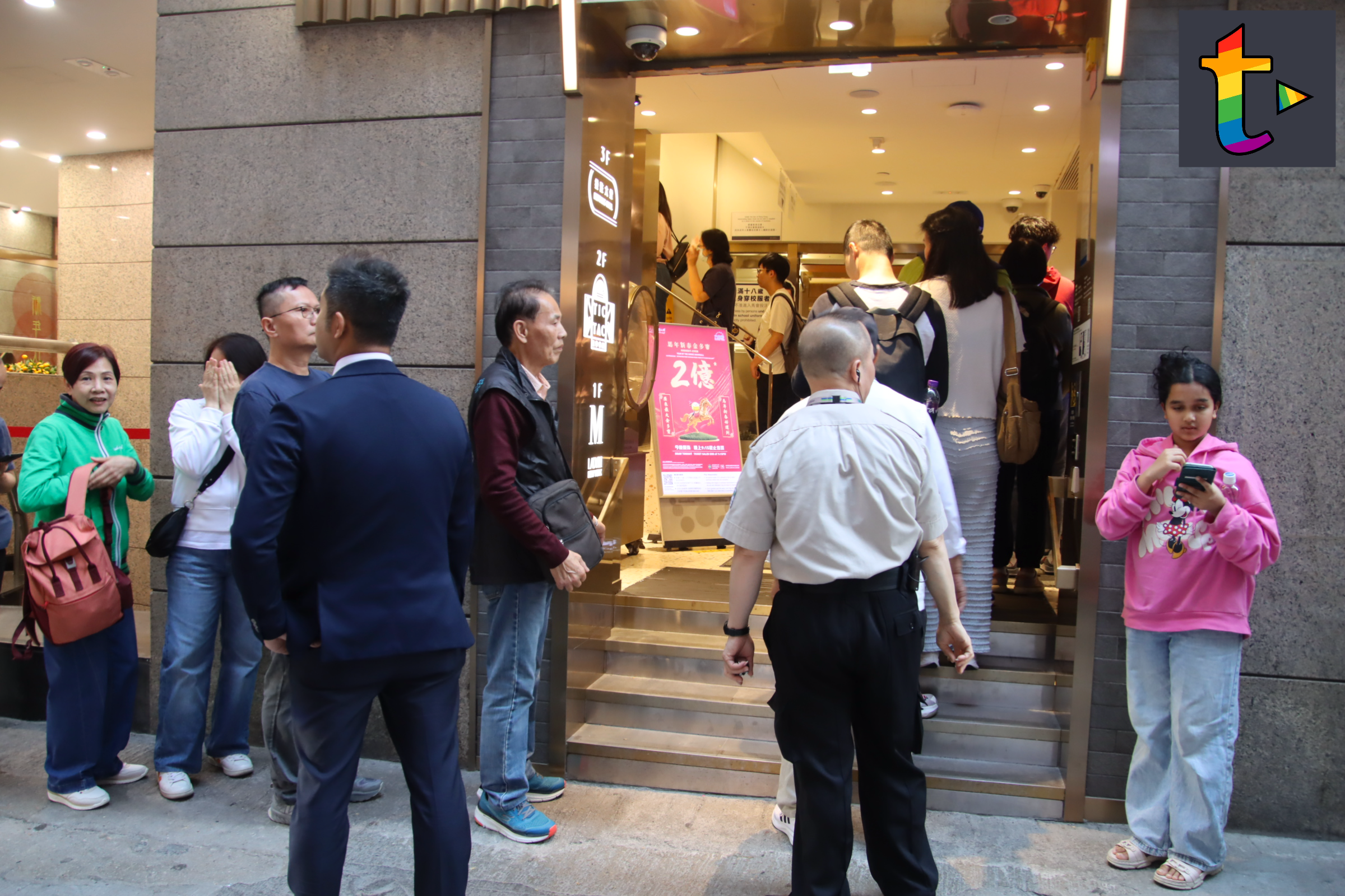 T Channel HK 彩虹頻度新聞專區 香港新聞-2億六合彩頭獎全城瘋狂,熱門投注站大排長龍 TChannelHK February 21, 2026 1 min read Spread the love 今日係新春金多寶攪珠,頭獎若1注中可獨得六合彩史上最高獎金2億元,如此高的獎金引起全城瘋狂,當中熱門投注站士丹利街馬會投注站更大排長龍排隊購買六合彩彩票。 文字/攝影:美娜 Author: TChannelHK Author ProfileRelated Posts TChannelHKTChannelHKApril 20, 2026香山新聞特約:港澳新聞-油價高企,噴射飛航、金光飛航來往香港至澳門船票週六起加價約1成TChannelHKApril 20, 2026香山房新聞特約:香港新聞-宏福苑居民首日返回單位執拾TChannelHKApril 19, 2026香山房新聞特約:香港新聞-全港非遺醒獅慈善創作大賽頒獎典禮TChannelHKApril 19, 2026香山房新聞特約:香港新聞-宏福苑大火聽證會重點,因為中港消防技術不相容,而沒有要求深圳消防協助 Continue Reading Previous: 香港新聞-政府公佈宏福苑長遠居住方案Next: 澳門新聞-澳門氹仔煙花炮仗指定燃放區今晚午夜結束 Leave a Reply Cancel replyYour email address will not be published. Required fields are marked *Comment * Name * Email * Website Save my name, email, and website in this browser for the next time I comment. Δ Related News 1 min read T Channel HK 彩虹頻度新聞專區 香山新聞特約:港澳新聞-油價高企,噴射飛航、金光飛航來往香港至澳門船票週六起加價約1成 TChannelHK April 20, 2026 1 min read T Channel HK 彩虹頻度新聞專區 香山房新聞特約:香港新聞-宏福苑居民首日返回單位執拾 TChannelHK April 20, 2026 1 min read T Channel HK 彩虹頻度新聞專區 香山房新聞特約:香港新聞-全港非遺醒獅慈善創作大賽頒獎典禮 TChannelHK April 19, 2026